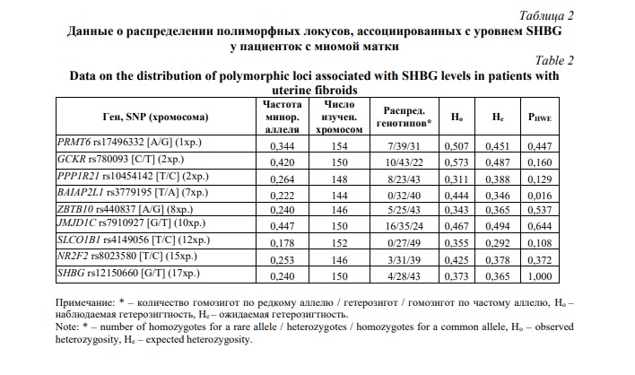 Целью исследования. Оценка связи полиморфных вариантов генов, ассоциированных с уровнем SHBG, с гормональным статусом пациенток с миомой матки.